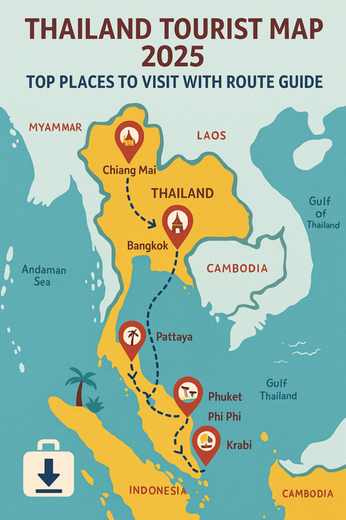 Thailand Tourist Map 2025 – Top Places to Visit with Route Guide Thailand Tourist Map 2025 – Top Places to