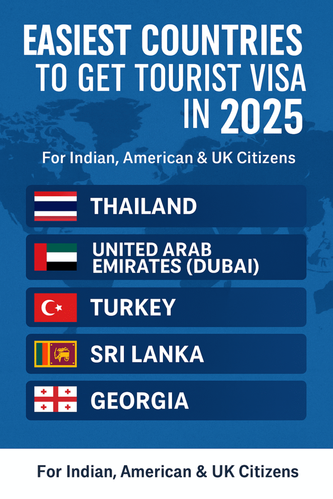 Top 5 Easiest Countries to Get Tourist Visa in 2025 for Indians, Americans & UK Citizens Looking for an easy