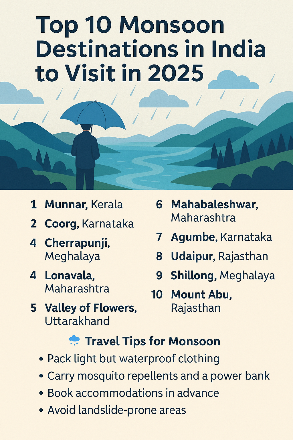 Top 10 Monsoon Travel Destinations in India (2025) Experience the magic of the monsoon in India with lush hills, cascading